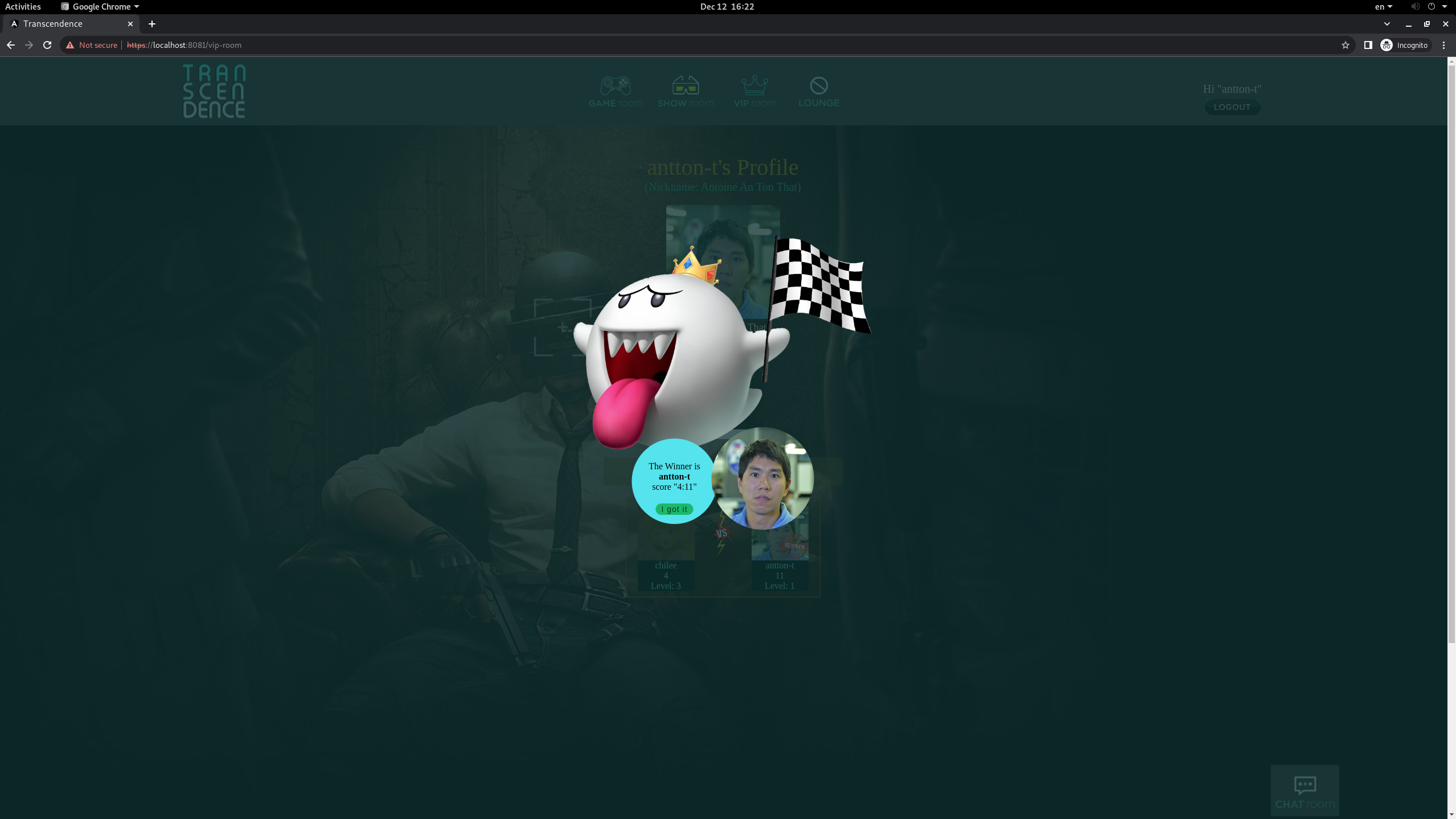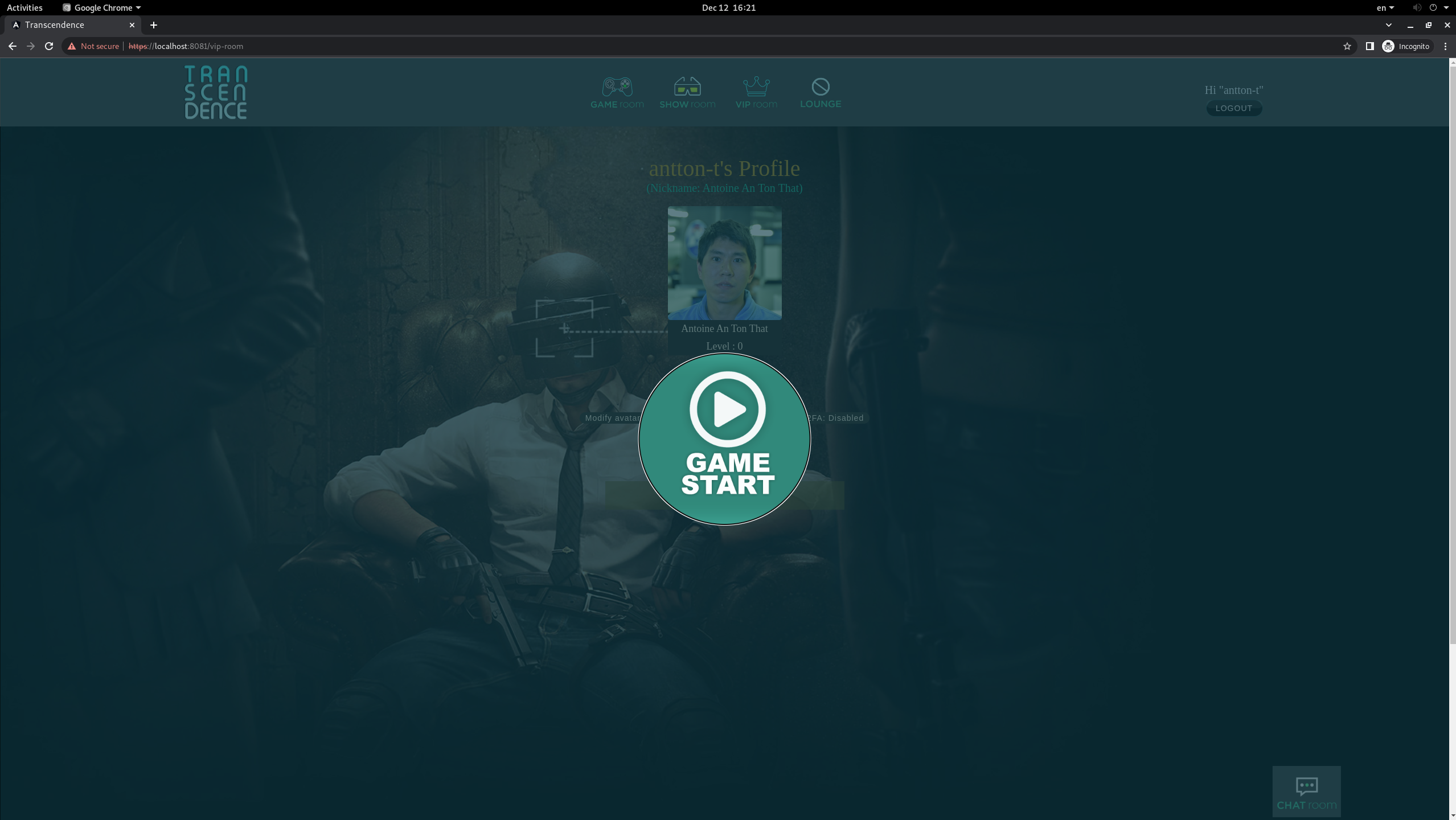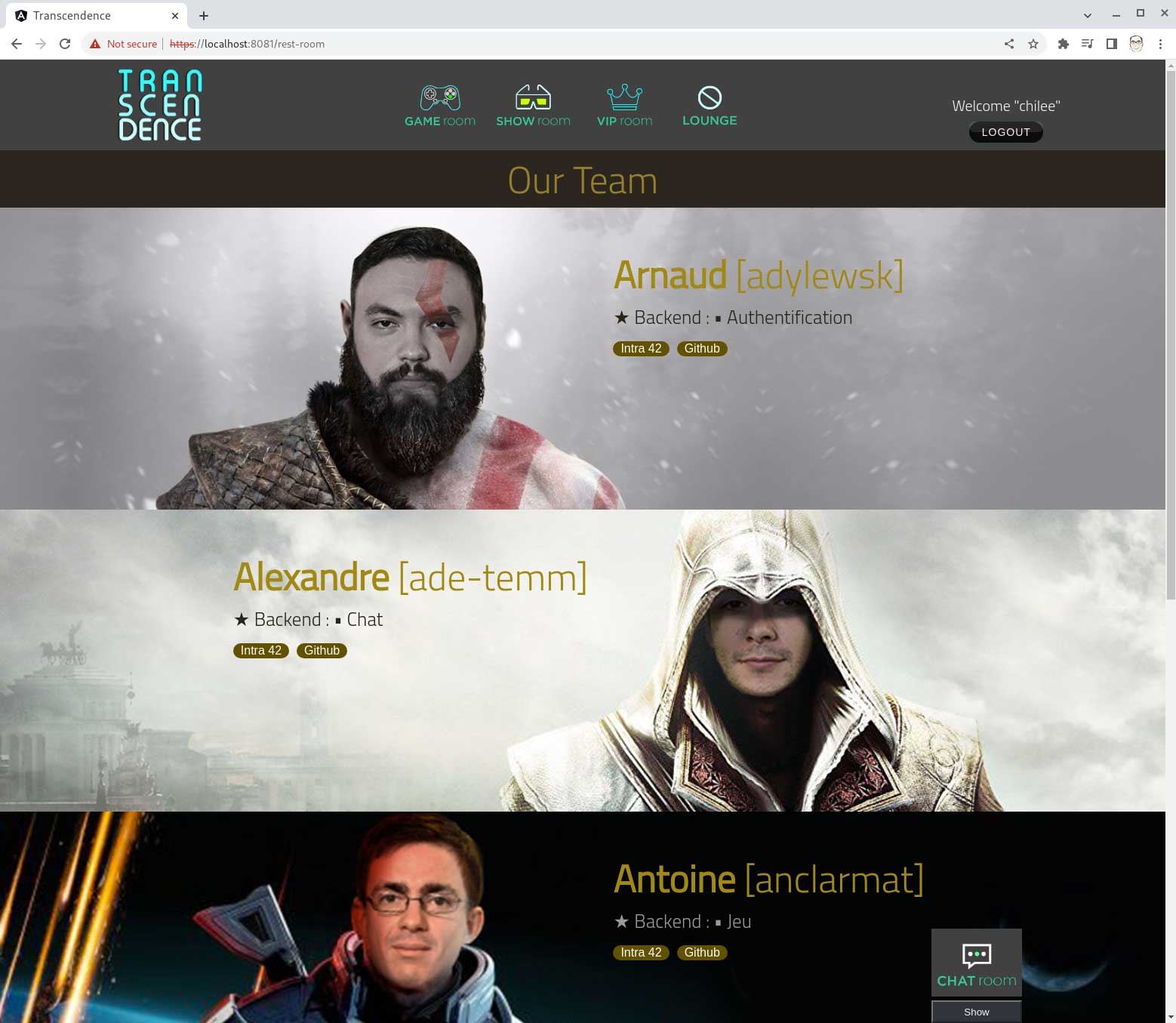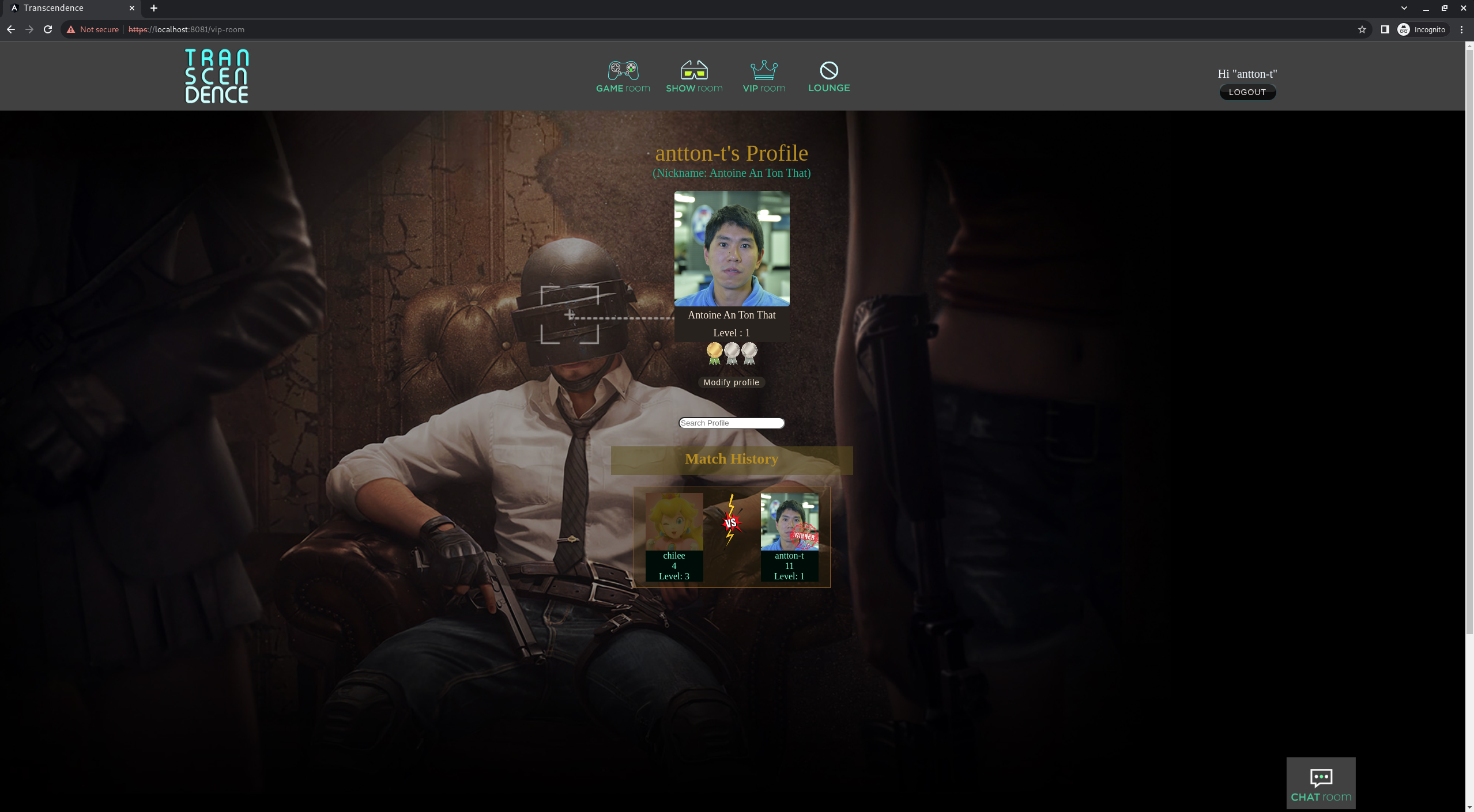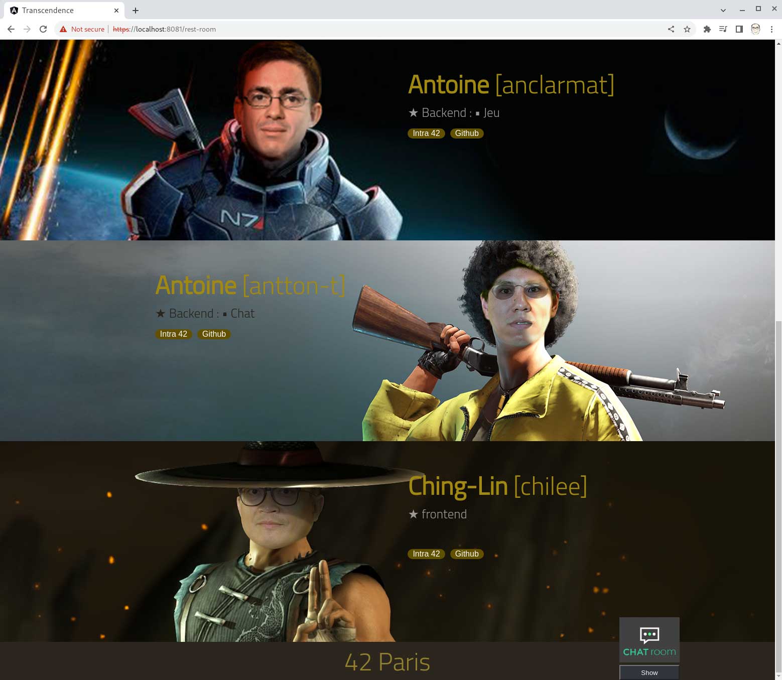Creation of a website for an online game “PONG”, with private and public chat and user interface