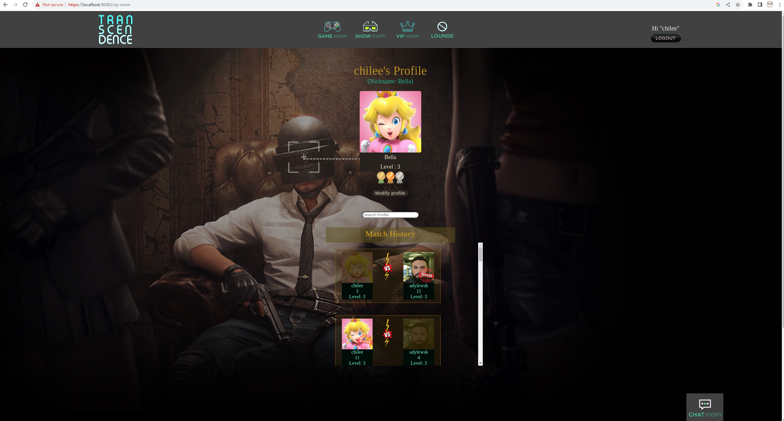 • Stats have to be displayed on the user profile. Such as: wins and losses, ladder level, achievements, and so forth